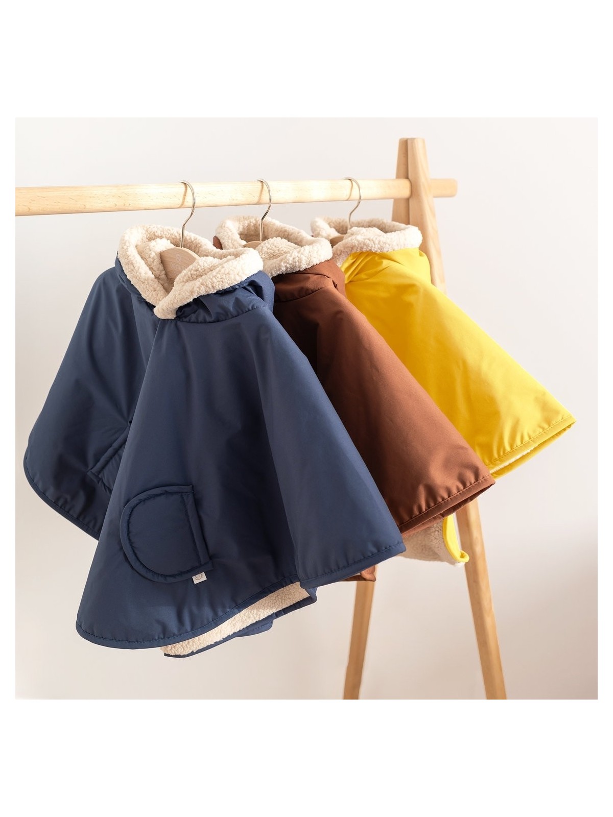 Imperméable, chaud et coupe-vent, le poncho est le manteau idéal pour voyager en voiture, se promener en poussette, à vélo ou en porte-bébé, toujours en toute sécurité.