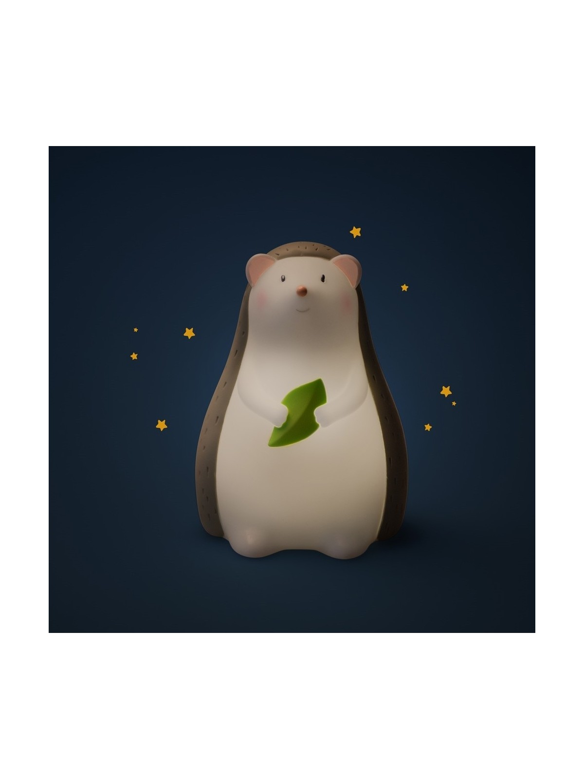 Lampe veilleuse hérisson en silicone sans BPA avec variateur (3 intensités). Diffuse une lumière rassurante dans la chambre de bébé une fois la nuit tombée et décore joliment la chambre durant la journée ! Module LED amovible.